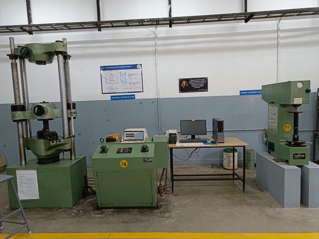 | Materials Testing Lab | Computerized Universal Testing Machine, Torsion Testing, Impact testing, Hardness testing, Wear Testing, Metallurgical Microscope |